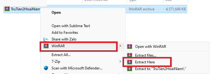 Bước 1: Sau khi tải game về tiến hành giải nén file TruTien2_RemakeTuoiTho.rar client game