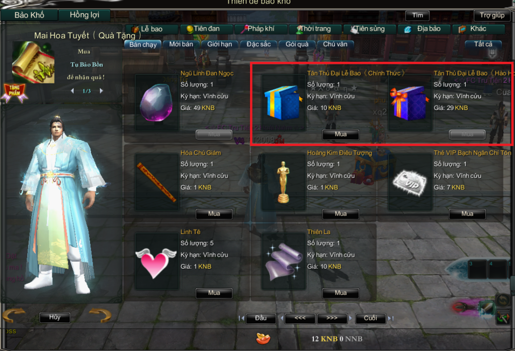 Sau đó nếu có KNB thì bấm J lên mua gói hỗ trợ tân thủ rất rẻ